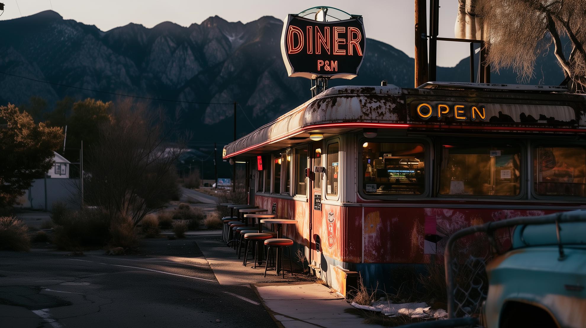 Zoe sitzt in einem alten, staubigen aber coolen, heruntergekommenen Diner/Café mitten in der Wüste. Sie liebt diesen Ort aus zwei Gründen...