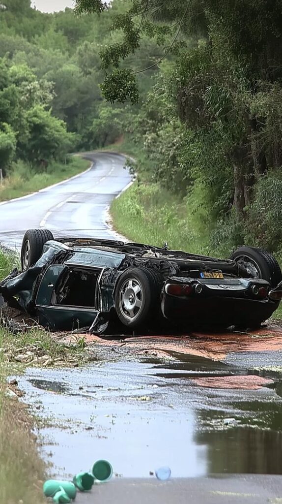 Später, als sie eine kurvenreiche Straße durch die Lavendelfelder entlangfuhr, stieß sie auf einen beunruhigenden Anblick: ein einst luxuriöser Bentley, schwer beschädigt und nun unsicher auf seinen Rädern ruhend. Der metallische Glanz war von tiefen Kratzern und Dellen gezeichnet, und Glassplitter funkelten zwischen dem verstreuten Lavendel am Straßenrand. Das Dach war eingedrückt, und die Frontpartie war durch den Aufprall zerknittert, doch irgendwie hatte sich das Auto nach einer heftigen Rolle wieder aufgerichtet.